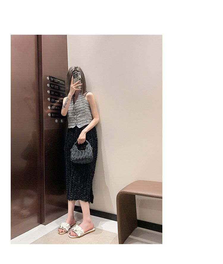 Faux Pearl Ruffle Slide Sandals