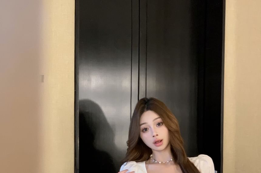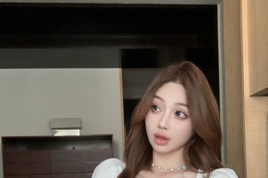 Sleeveless Scoop Neck Plain Bow Frill Crop Blouse / High Rise Maxi A-Line Skirt