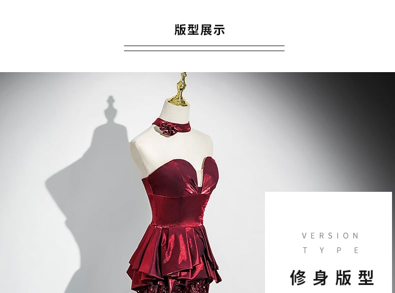 Sequin Peplum Panel Trumpet Tube Evening Gown