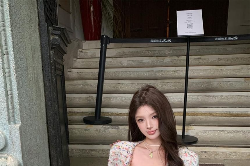 Set: Button-Up Tweed Crop Jacket + Mini Skirt