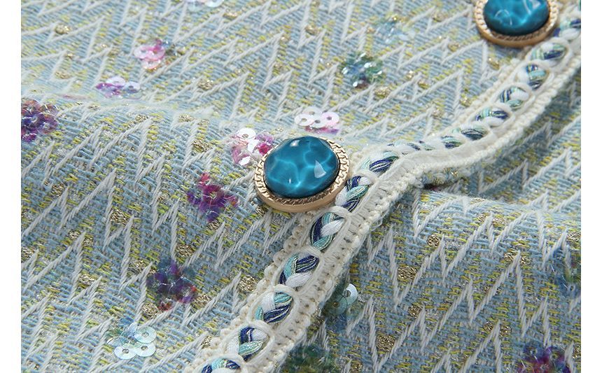 Set: Floral Tweed Button-Up Jacket + Mini Skirt
