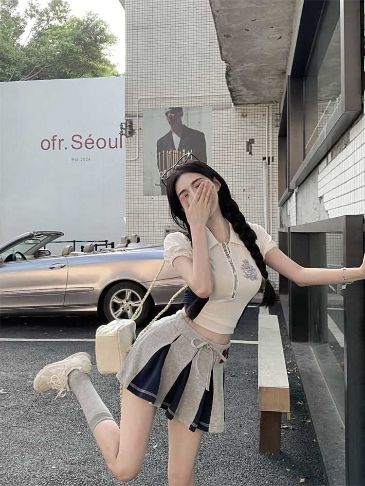 Short-Sleeve Logo Embroidered Crop Polo Shirt