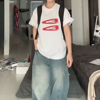 Short-Sleeve Round Neck Print Oversized T-Shirt