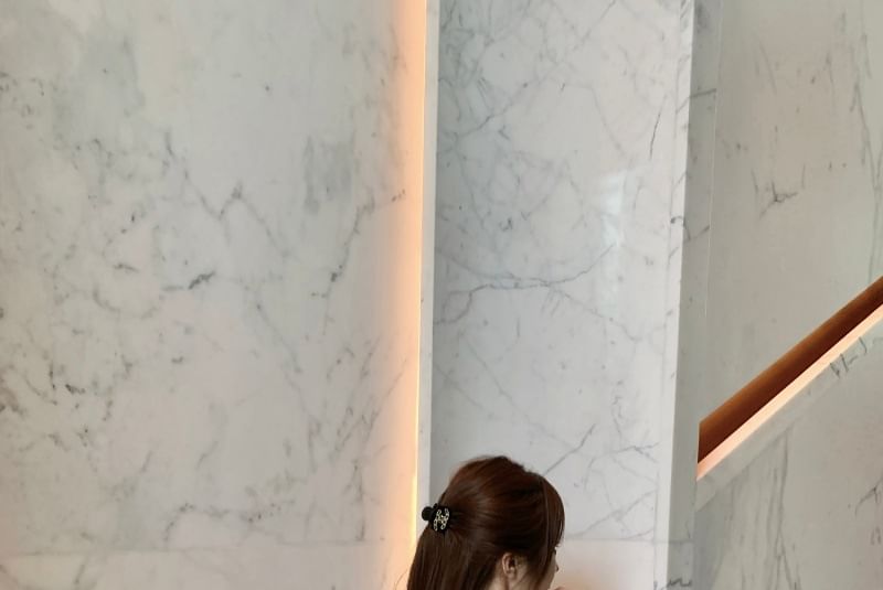 Short-Sleeve Round Neck Plain Pointelle Knit Top