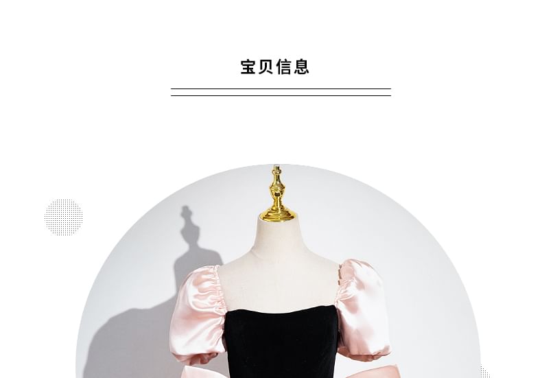 Short-Sleeve Square Neck Two Tone Bow Panel Satin A-Line Evening Gown