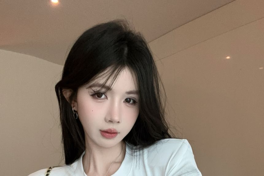 Short-Sleeve Crew Neck Lettering Slim Fit Tee