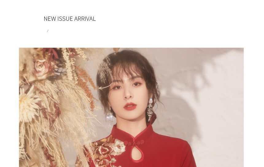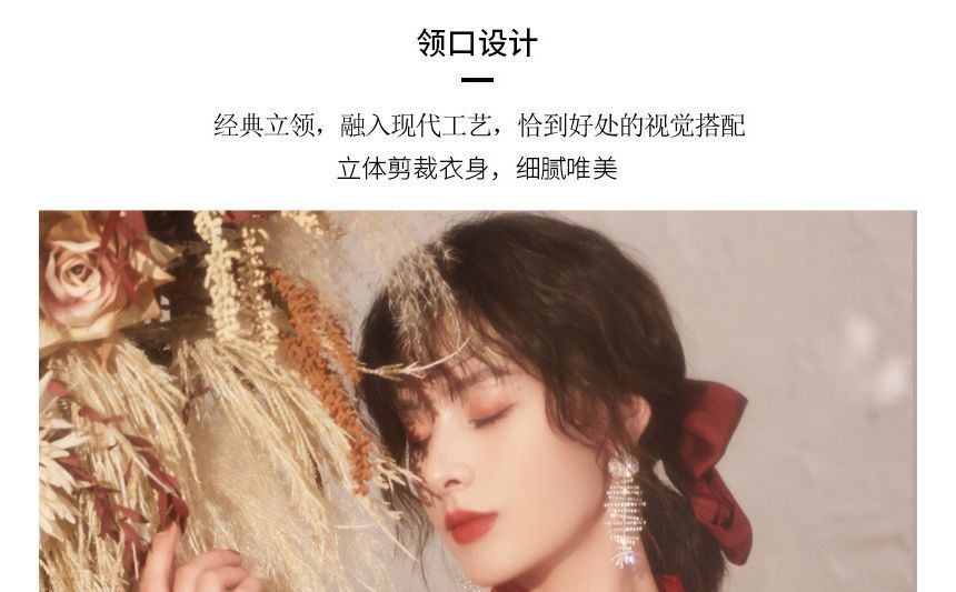 Side-Slit Embroidered / Short-Sleeve A-Line Qipao Flower