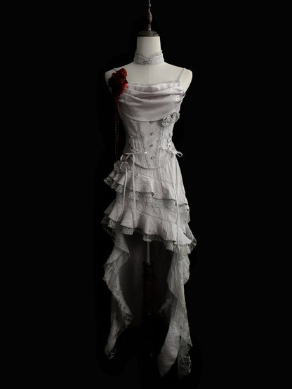 This Silver Gray Asymmetrical Ruffle Skirt is a must-have for any fashion-forward individual. The unique asymmetric ruffle detailing adds an edgy and modern twist to the classic silver gray color. Featuring a comfortable fit and versatile design, this skirt is perfect for any occasion and sure to turn heads. Elevate your style game with this statement piece now!
