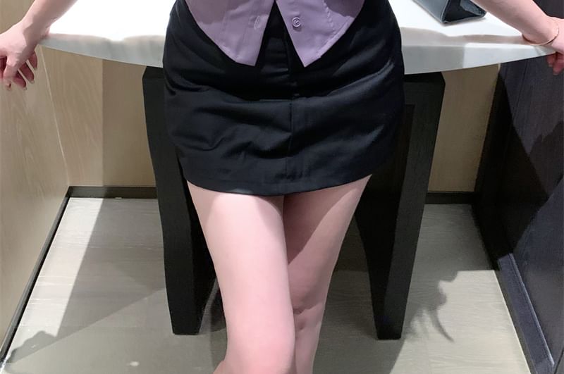 Sleeve Plain 3/4 Shirt Collared