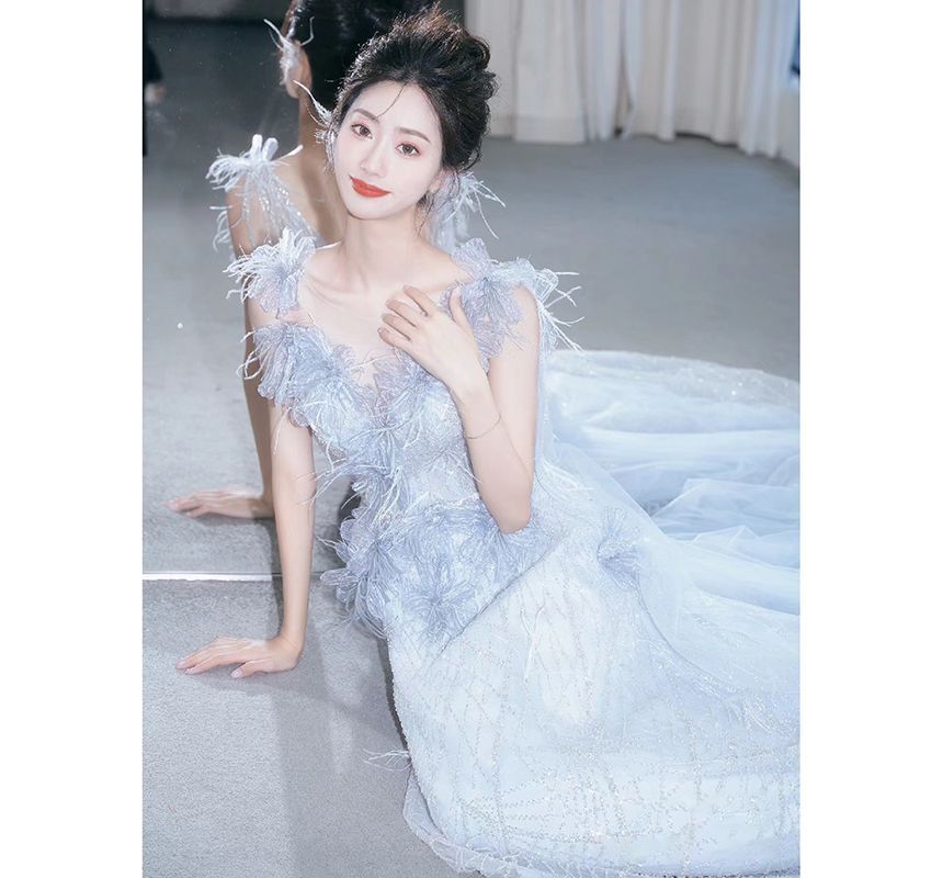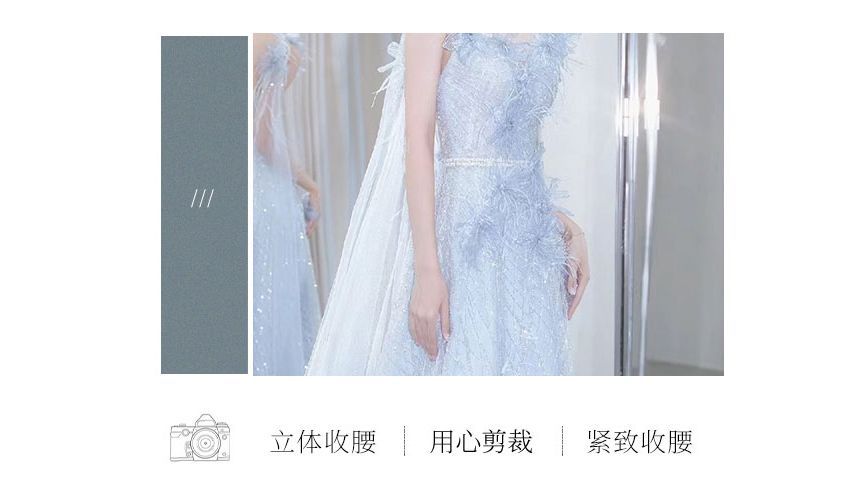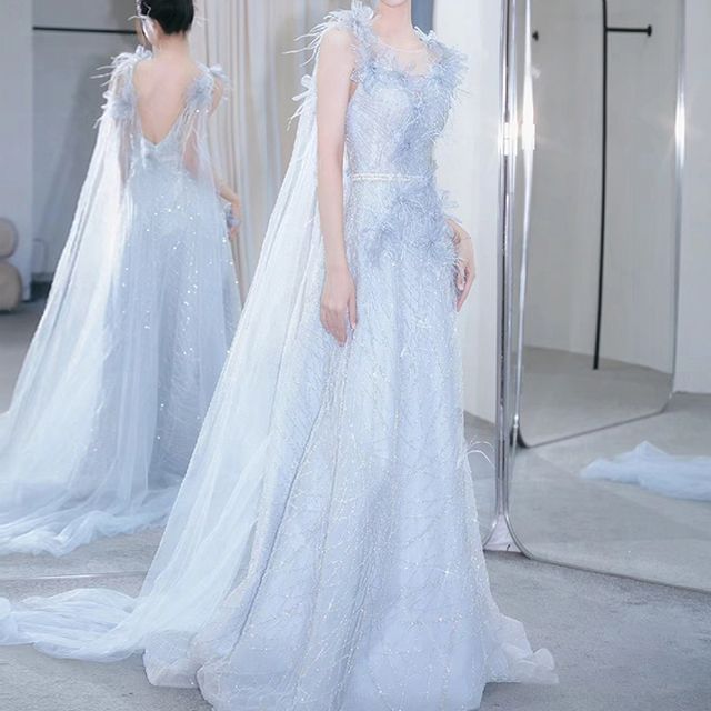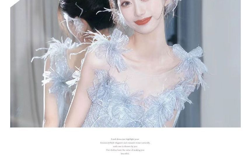 Sleeveless Scoop Neck Plain Flower Detail A-Line Evening Gown