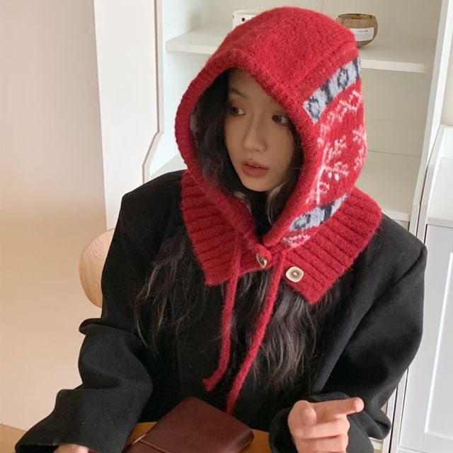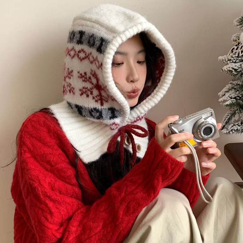 Snowflake Print Knit Balaclava