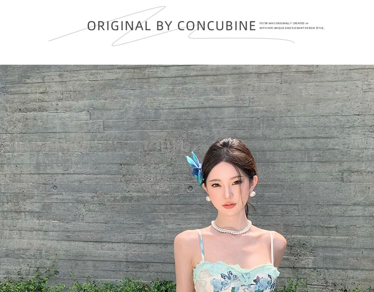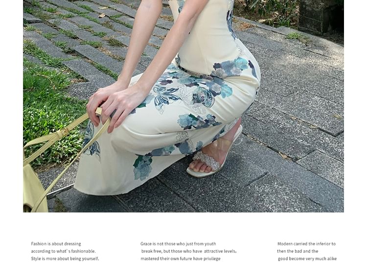 Spaghetti Strap Lace Trim Floral Bodycon Midi Dress