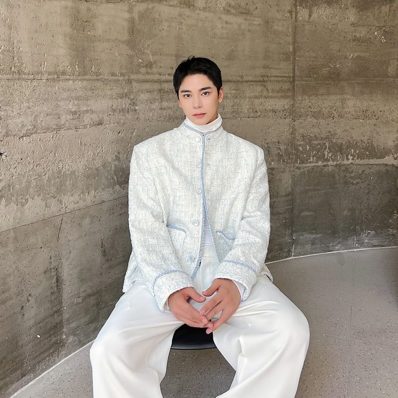 Stand Collar Tweed Contrast Trim Button-Up Jacket
