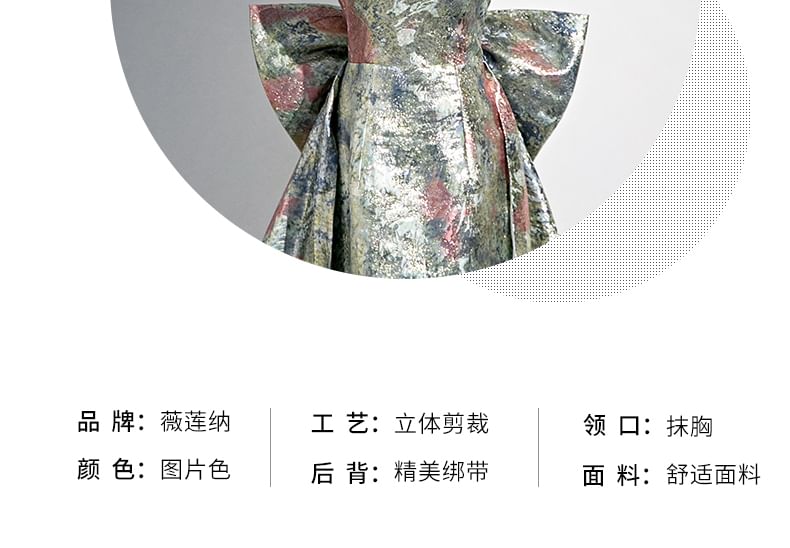 Strapless Floral Print Bow Back A-Line Evening Gown