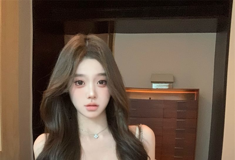 Sundress Spaghetti Trim Lace Strap V-Neck Mini Plain