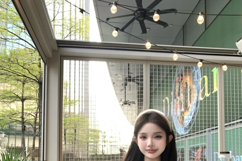 Tiered / Waist Bow Short Plain Tee Sleeve Neck Shorts Lace Scoop High