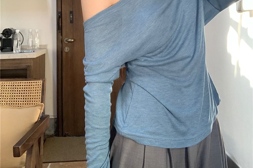 Tone T-Shirt Cold-Shoulder Two-Piece Long-Sleeve Two Mock