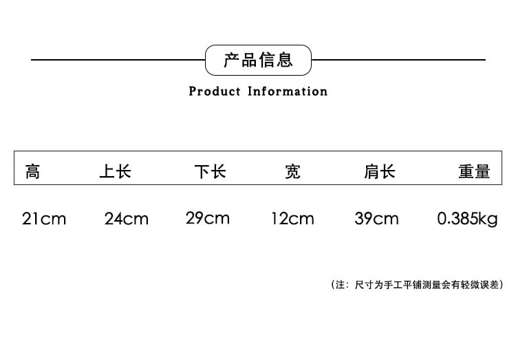 | Height | Upper Length | Bottom Length | Width | Strap Length |