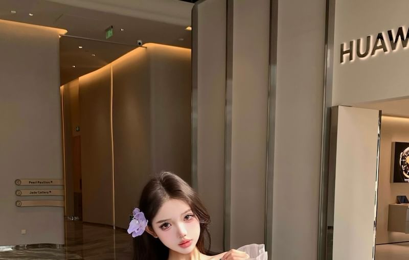 Tunic Trim Ruffle Blouse Long-Sleeve Off-Shoulder Plain