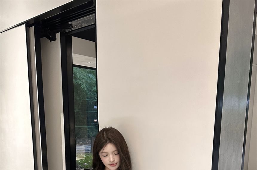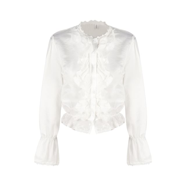 Tweed Button Up Jacket / High Rise Mini A-Line Skirt / Long-Sleeve Plain Ruffle Trim Blouse