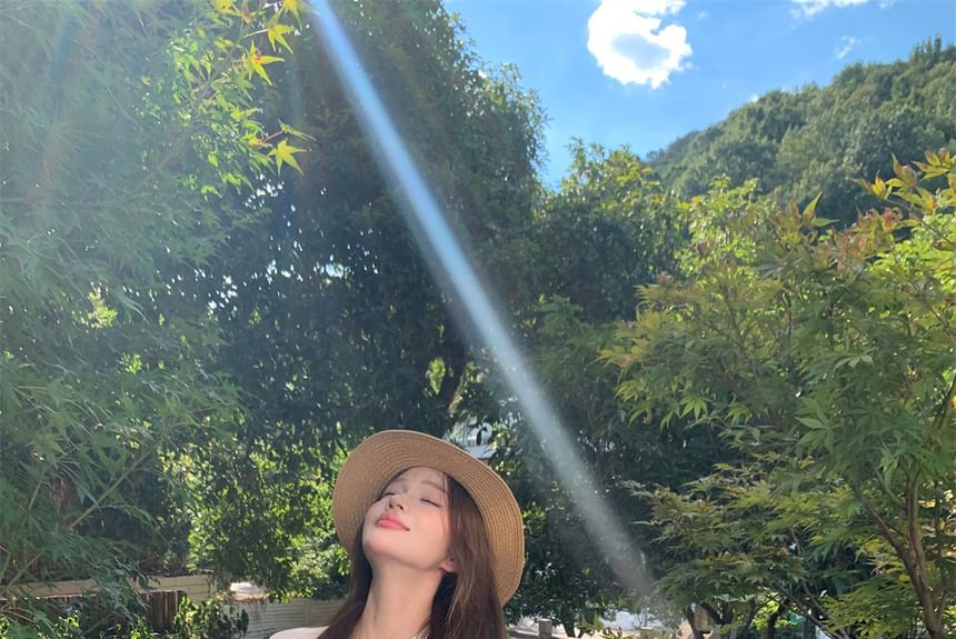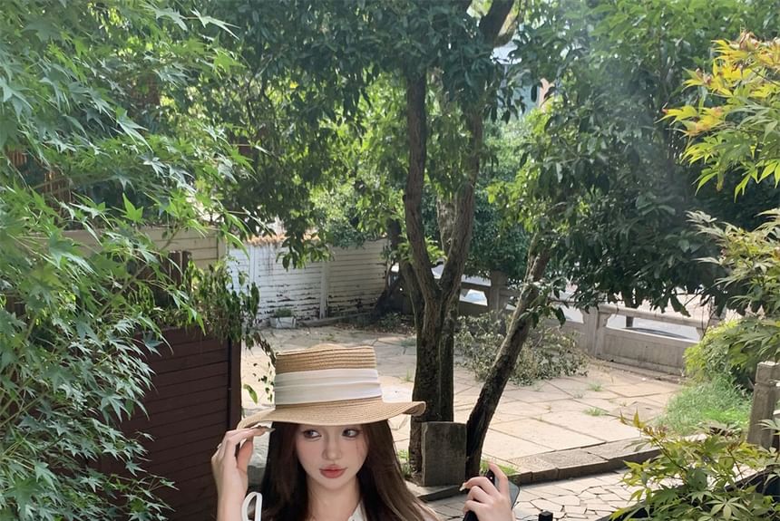 Puff-Sleeve Plain Lace-Up Shirt / High Waist Ruffle Shorts